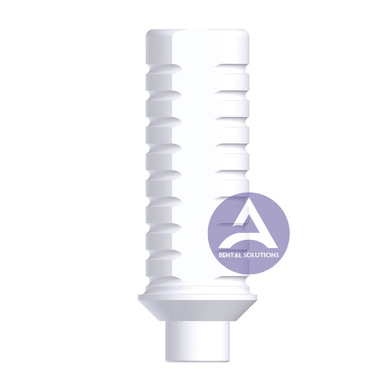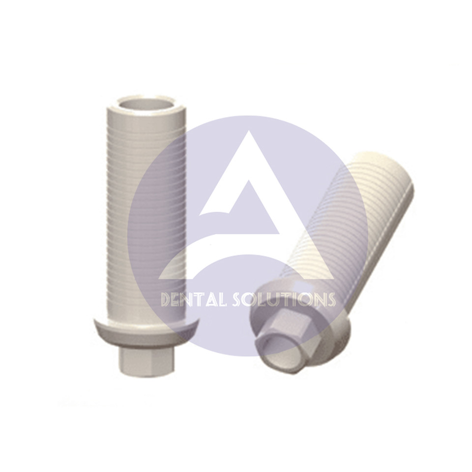 UCLA Pełnoplastikowe na łącznikach są produkowane z obrobionym interfejsem złoty łącznik/implant i plastikową rurką przetworzoną na złotej części UCLA. Indeksowane (sześciokątne) UCLA (Rys. 7, górny rząd) są dostępne dla wszystkich trzech średnic platformy (3,5, 4,5, 5,7 mm), podczas gdy nieindeksowane UCLA (Rys. 7, dolny rząd) są oferowane tylko dla średnic platformy 3,5 i 4,5 mm. Każdy łącznik jest pakowany ze śrubą mocującą do kompletnego zestawu.